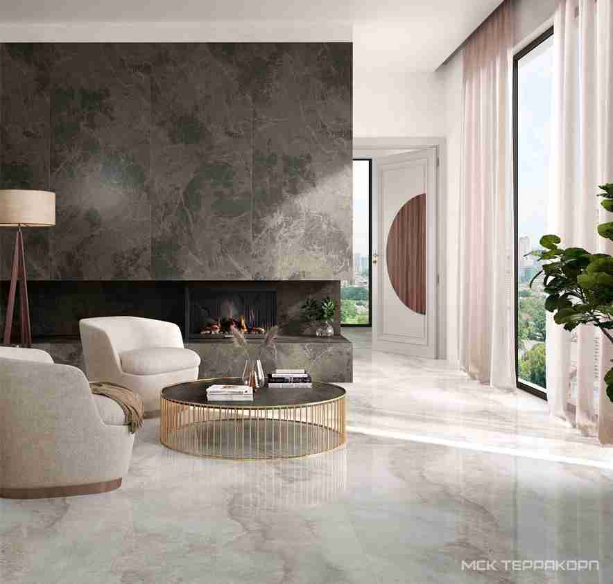 Керамический гранит (керамогранит) для пола и стены Kalesinterflex Marbles Marbles Olimpo 5.5 mm 100x300