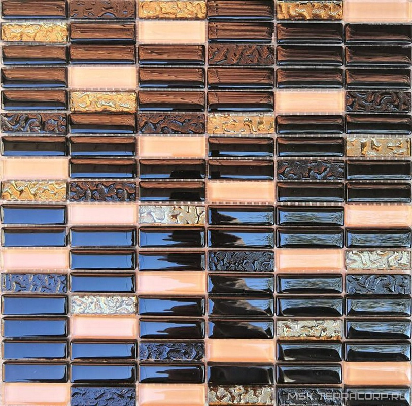 Мозаика Мастера Керамики Glass Мозаика 1084 микс черный-черный риф.верх-бежевый разбеленный-золото риф. низ15х48 ZZ|30х30 XX