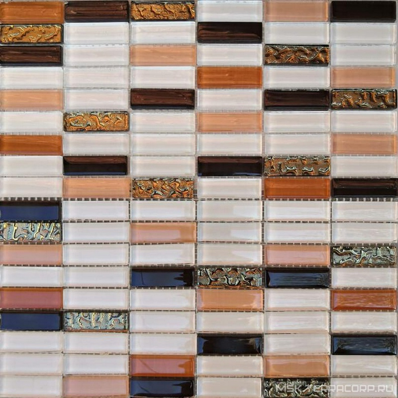 Мозаика Мастера Керамики Glass Мозаика 2368 микс белый-бежевый разбеленный-бежевый коричневый-золото риф.низ 15х48 ZZ|30х30 XX