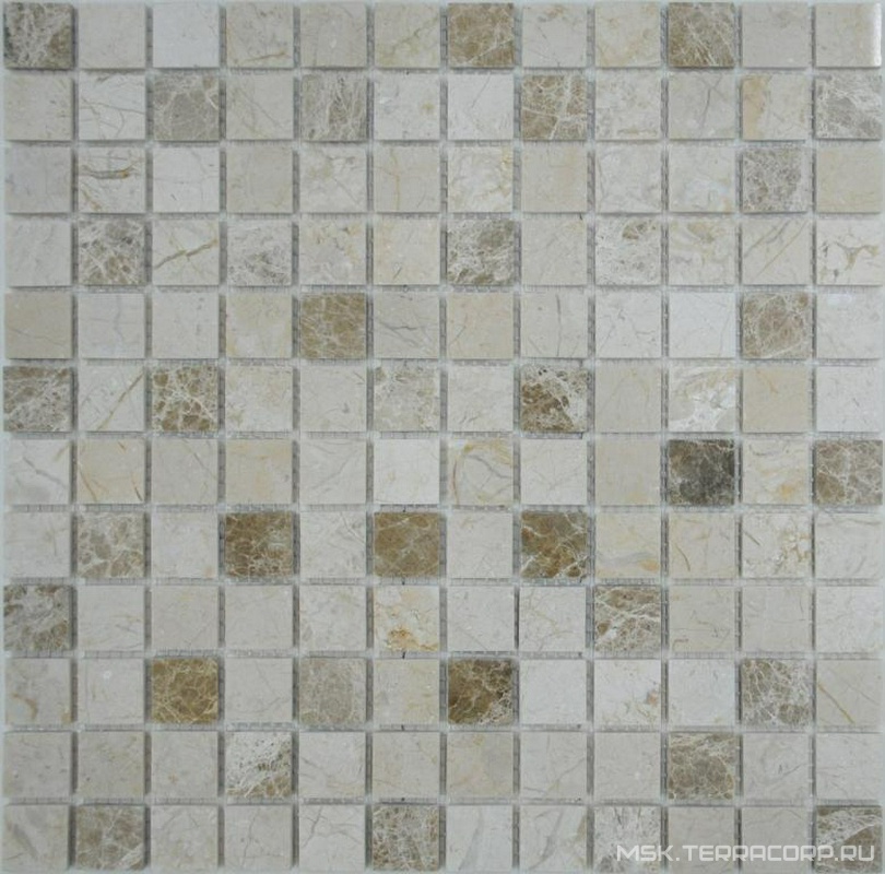 Мозаика Glass & Stone 2027 микс мрамор бежевый-коричневый-молочный (чип 15х15)|30х30