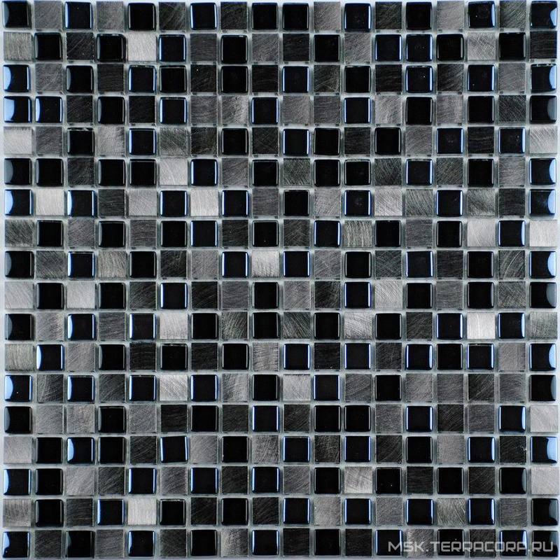Мозаика 2083 микс бирюза, белый, темная бирюза колотая, платина (чип 15х15)|30х30