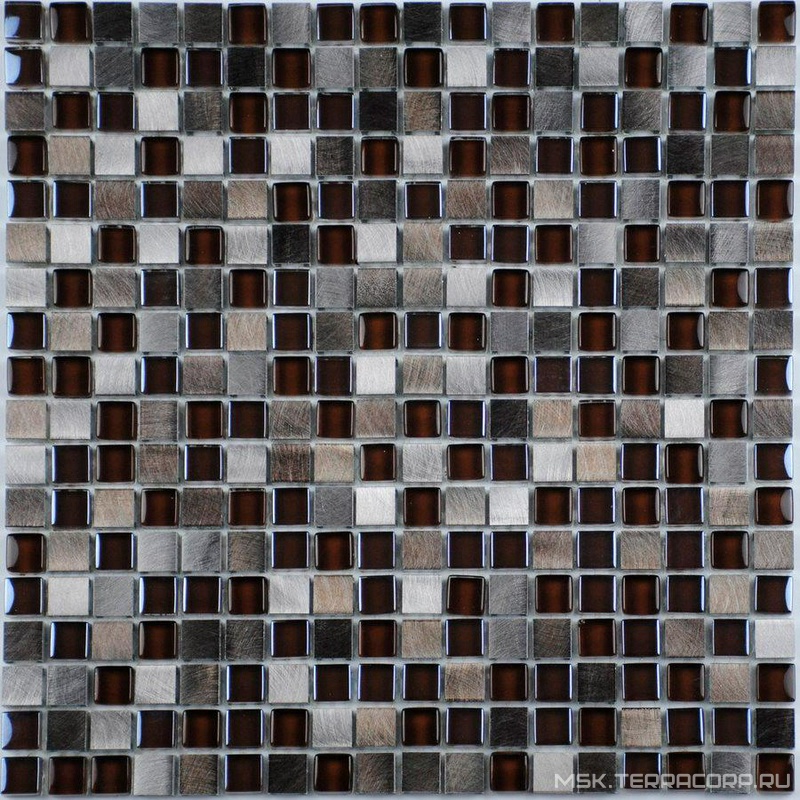 Мозаика 2083 микс бирюза, белый, темная бирюза колотая, платина (чип 15х15)|30х30
