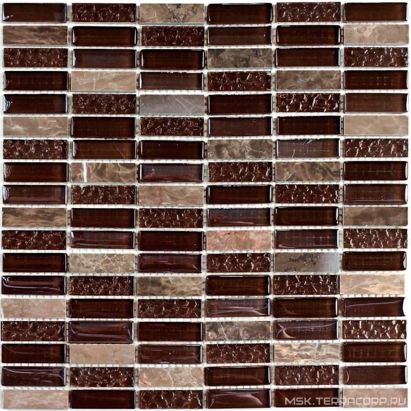 Мозаика Super Line (brown) (15x48x7) 30x30 Bonaparte Мозаика стеклянная с камнем n156858