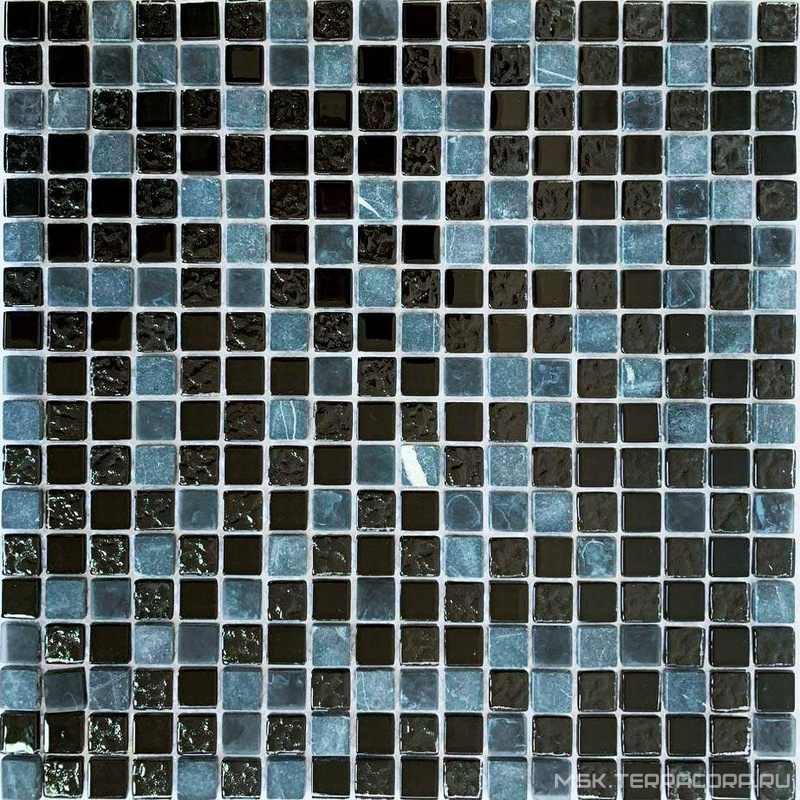 Мозаика 2083 микс бирюза, белый, темная бирюза колотая, платина (чип 15х15)|30х30