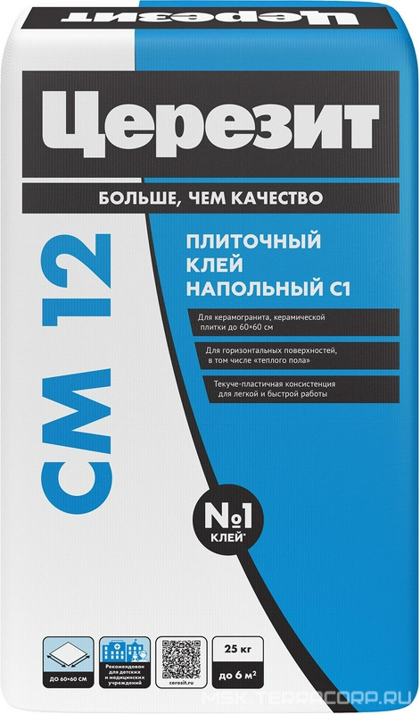 Клей для плитки д/внутр.работ Керамогранит СМ12 25 кг. ПП ZZ Церезит CM 12 1773340