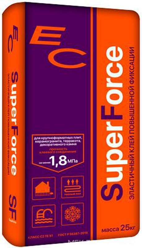 д/плитки форматом до 100 х100 см ЕС SUPER FORCE, 25кг (50) ZZ Екатеринодарские смеси Клей ЕСSUPER