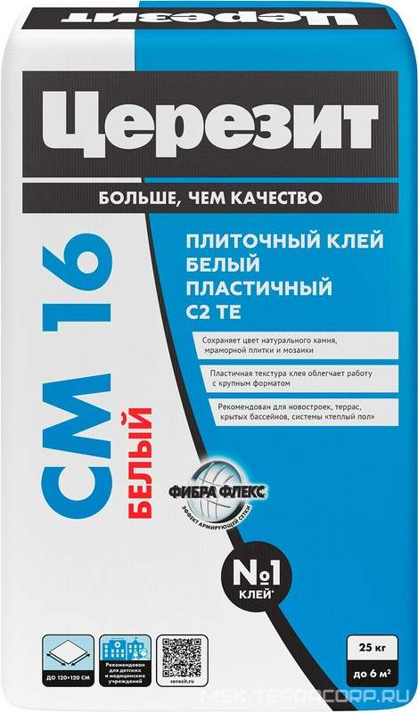 Клей для плитки эластичный белый СМ16 25кг Церезит CM 16 3040034