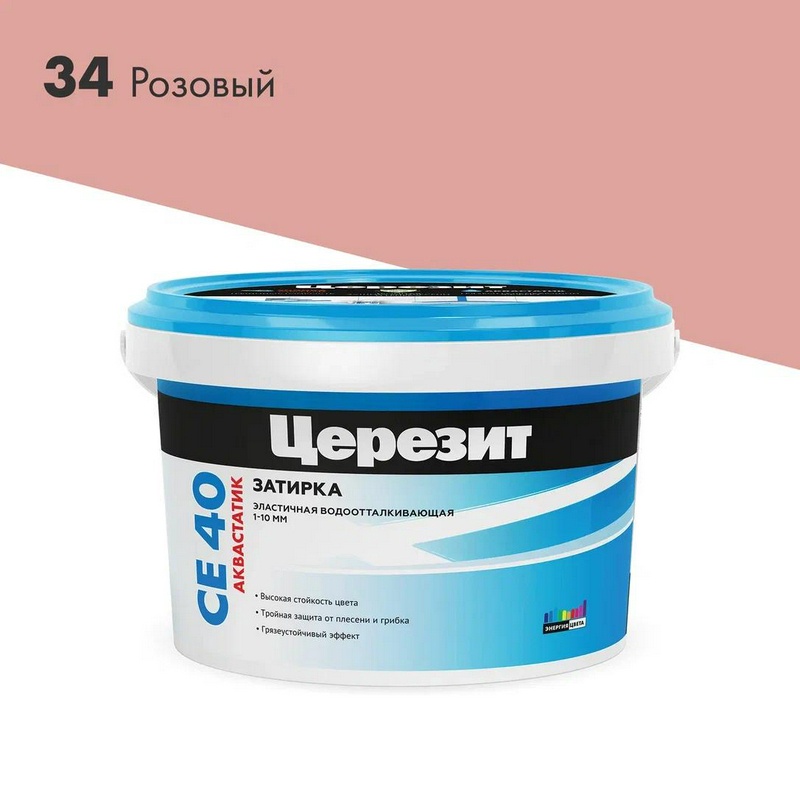 Затирка эласт/водоот. противогр. 1-10мм СЕ 40 (розовый 34) 2 кг XX