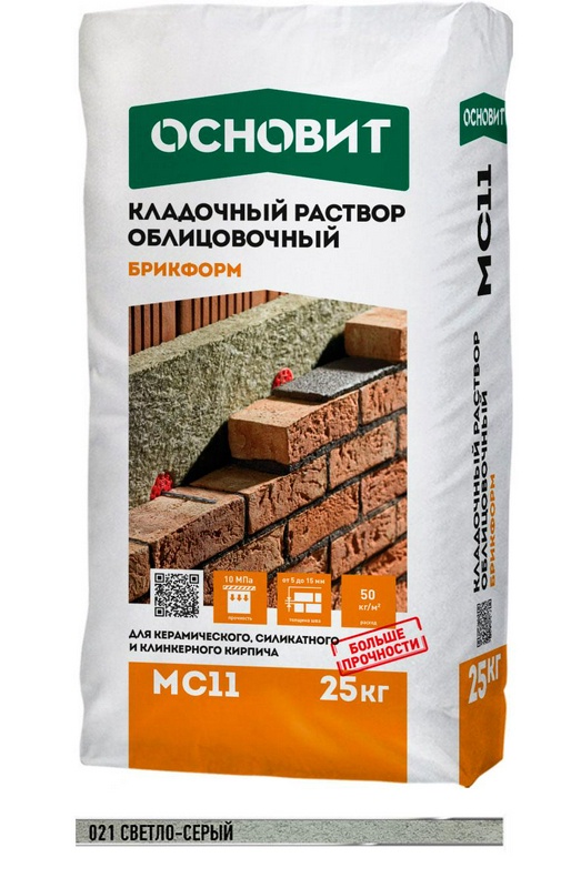 Кладочный раствор светло-серый 021 ОСНОВИТ БРИКФОРМ MC-11, 25 кг. ( п.п.) ZZ 021 ОСНОВИТ БРИКФОРМ MC-11, 25 кг. Основит МС11 Брикформ 64535
