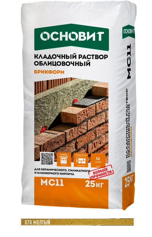 Кладочный раствор желтый 070 ОСНОВИТ БРИКФОРМ MC-11, 25 кг. (кратность 3 поддона) ( п.п.) ZZ Основит МС11 Брикформ 64545