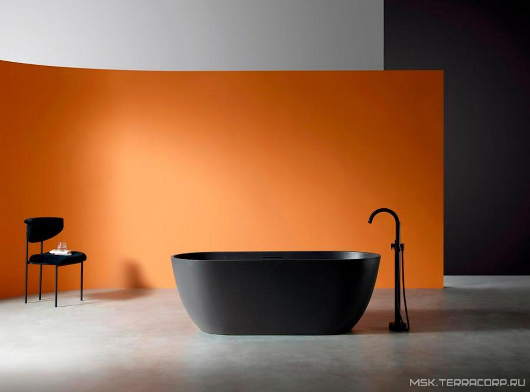 Ванна 1700х750h600мм, отдельностоящая, на каркасе, интегрир.слив-прелив крышка слива в цвет ванны, (искусств.камень цв.черный матов), Frankfurt ZZ