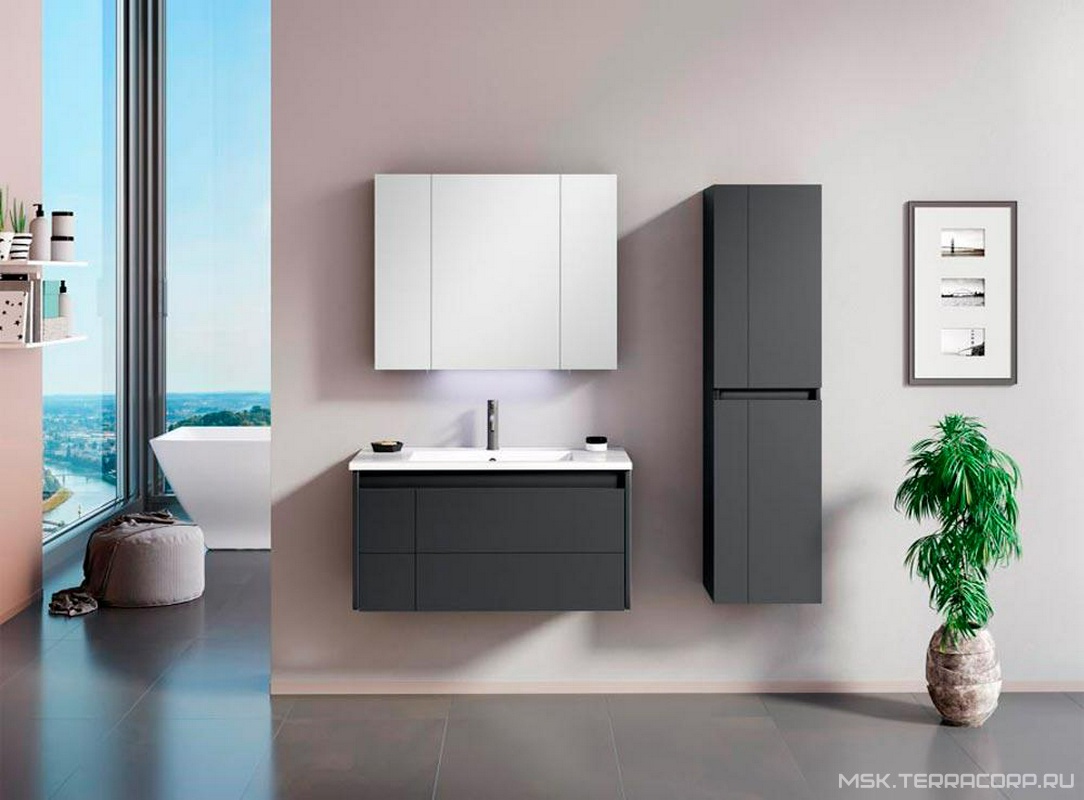 Тумба под раковину, с выкатным ящиком, 800х500хh460мм, раковина с керам.с отв.д/смест., с переливом в компл., (цв.антрацит матовый), XXZZ Abber Likya 5002491