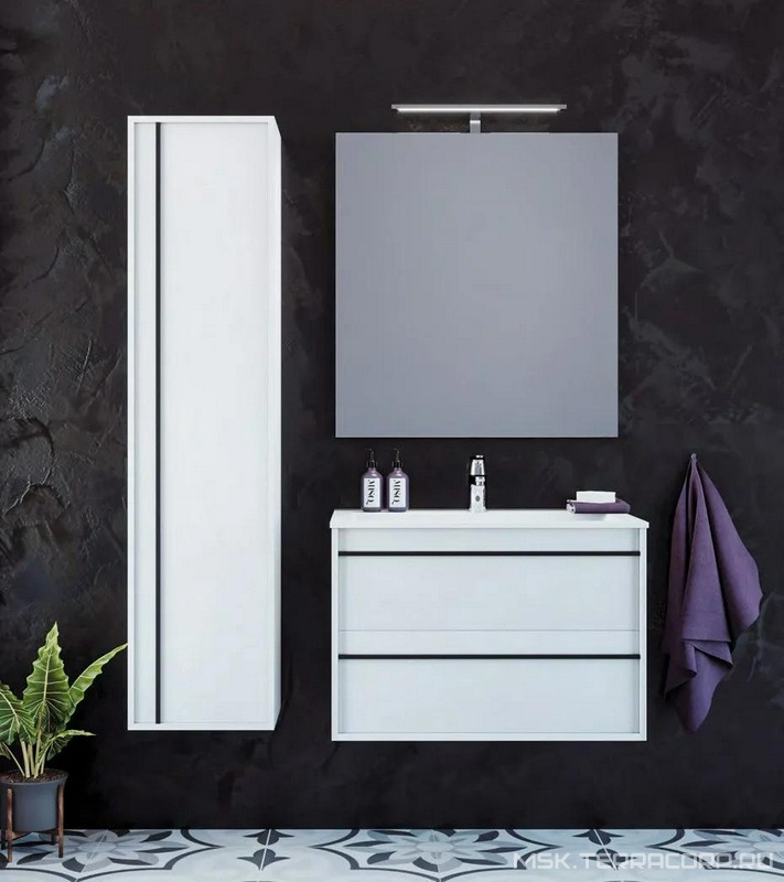 Тумба подвесная , 70 см, 2 выдвижн.ящика, без раковины n129238, цв.белый матовый/черный