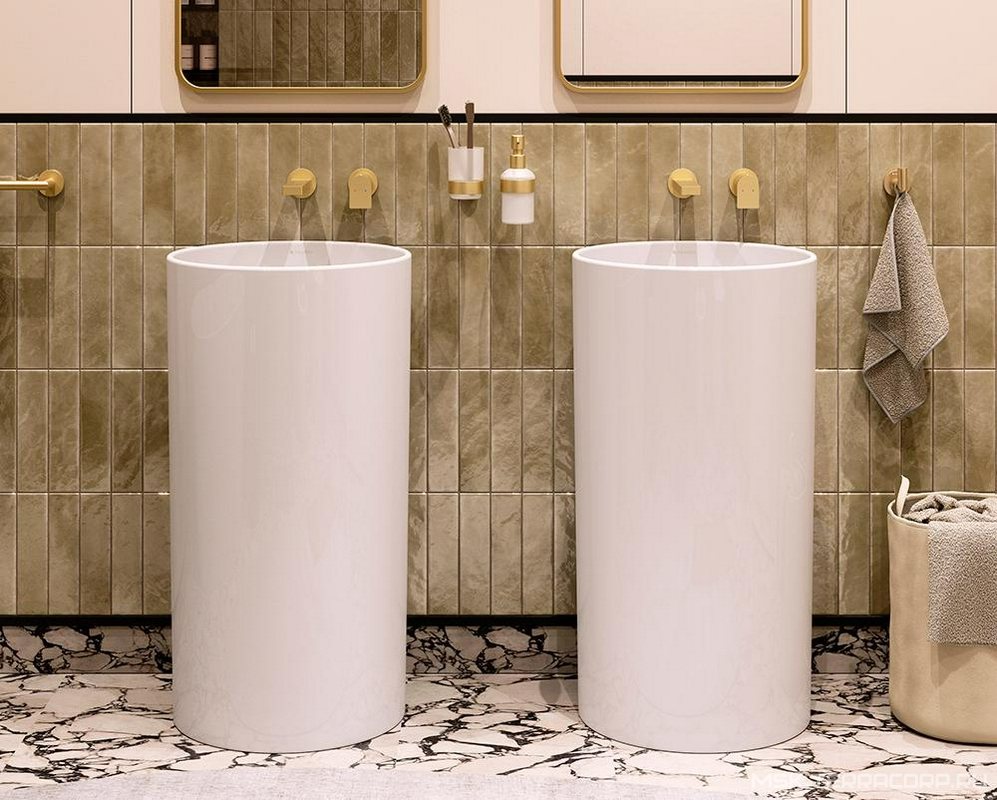 Раковина 450х450хh850мм, напольная, круглая, без отв.д/смес., без перелива, крепеж в компл., (керамика цв.белый), ZZ Aqueduto ТОДО TOD0110