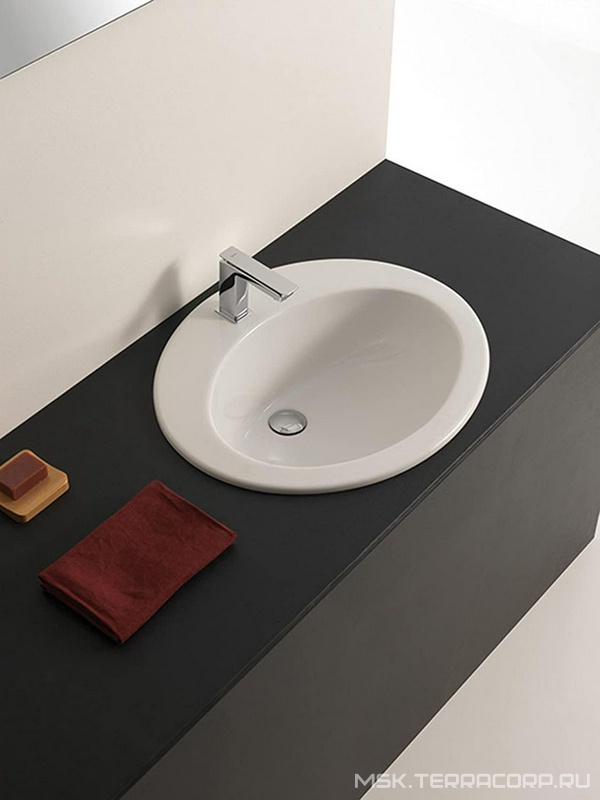 Раковина встраиваемая в столешницу сверху 590х480мм, с 1 отв. д/смесит., с переливом, (цв. белый), Eolo ZZ