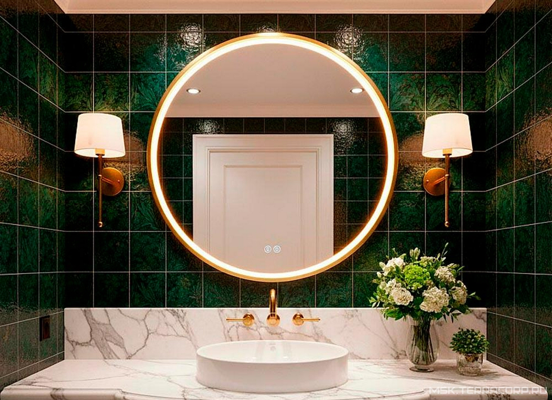 Зеркало круглое 700х700, LED-подсветка с диммером, сенсорный выключатель, подогрев, цвет золотой матовый Azario Димион АZ-LED011025