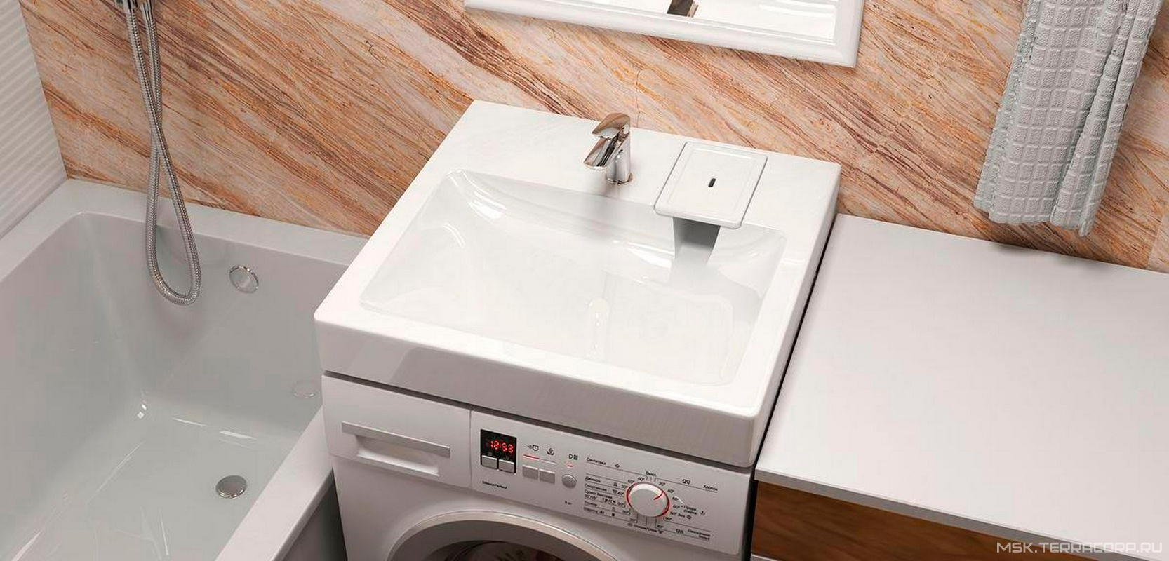 Раковина подвесная Slim 600х600х100, для установки над стиральной машиной, литьевой мрамор, сифон и кронштейны в компл., цв. белый, ZZ