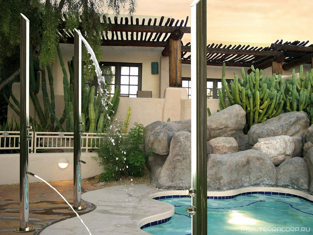 Душевая колонна h2110мм, верхн.каскад душ, душ д/ног, регулир. напора, без регул. темп., подв.воды из пола, (цв. полир./мат. нерж.сталь) AquaBambu ZZ