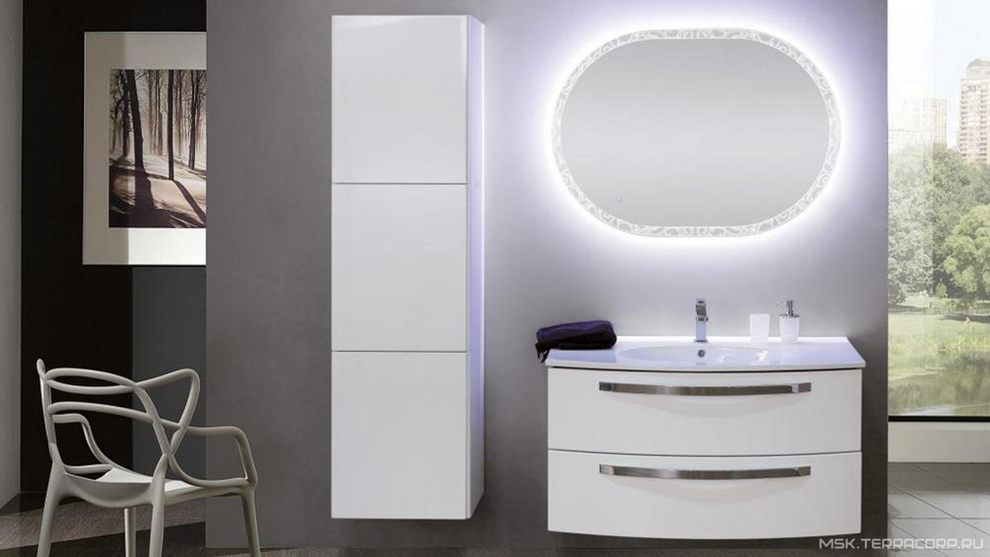 База под раковину подвесная с двумя выдвижными ящиками 100x54x55 см, Bianco Lucido ZZ