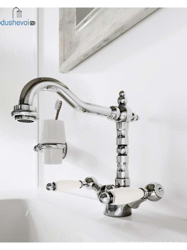 Смеситель для раковины, высокий с поворотным изливом, с д/к, (цв.бронза, ручка цв.белый), Elite ZZ Смеситель для раковины, высокий с поворотным изливом, с д/к, (цв.бронза, ручка цв.белый), Elite ZZ