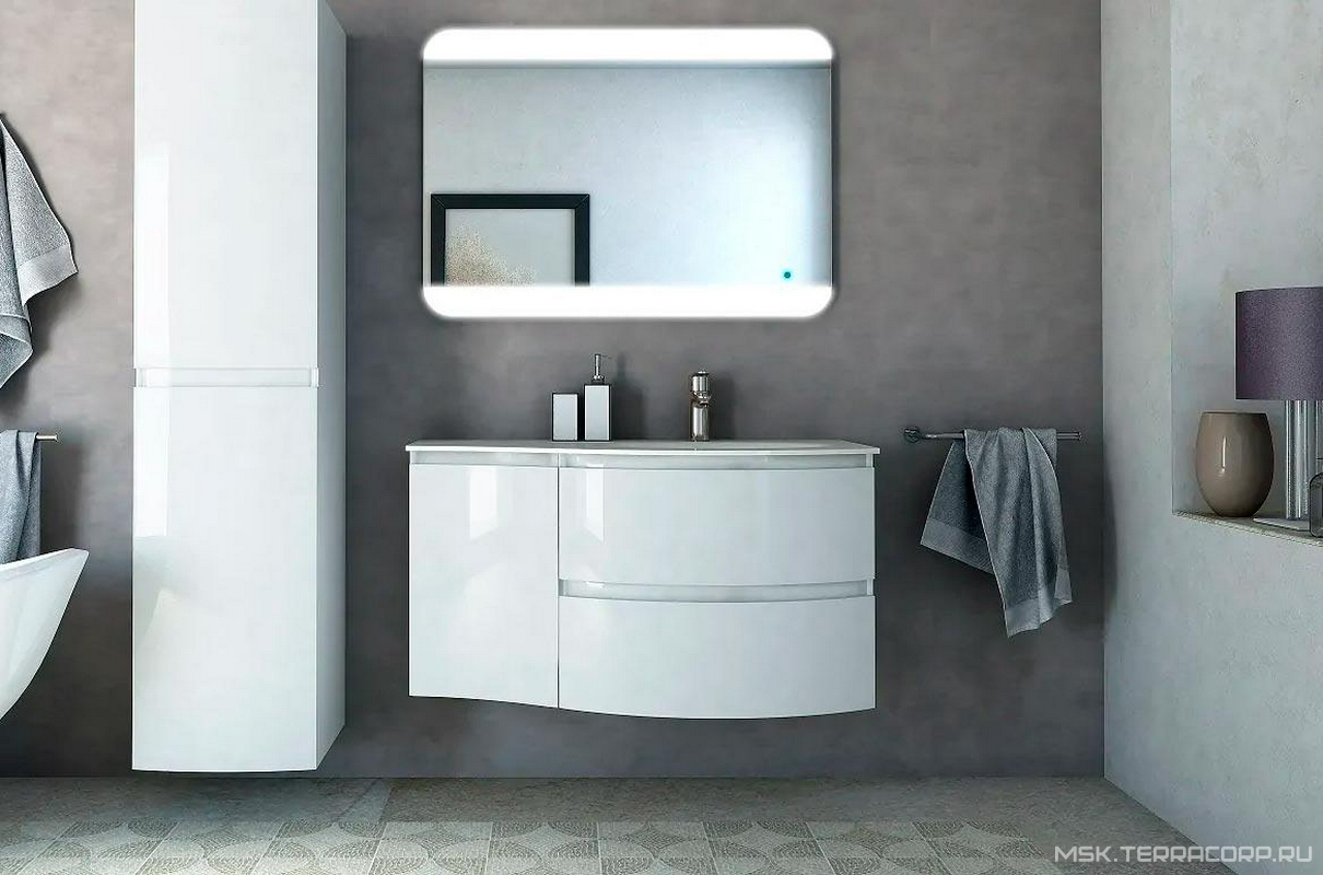 Шкафчик подвесной совместимый с базой под раковину, распашная дверь, левый, 34x40x55см, (цв.Bianco lucido), Vague ZZ