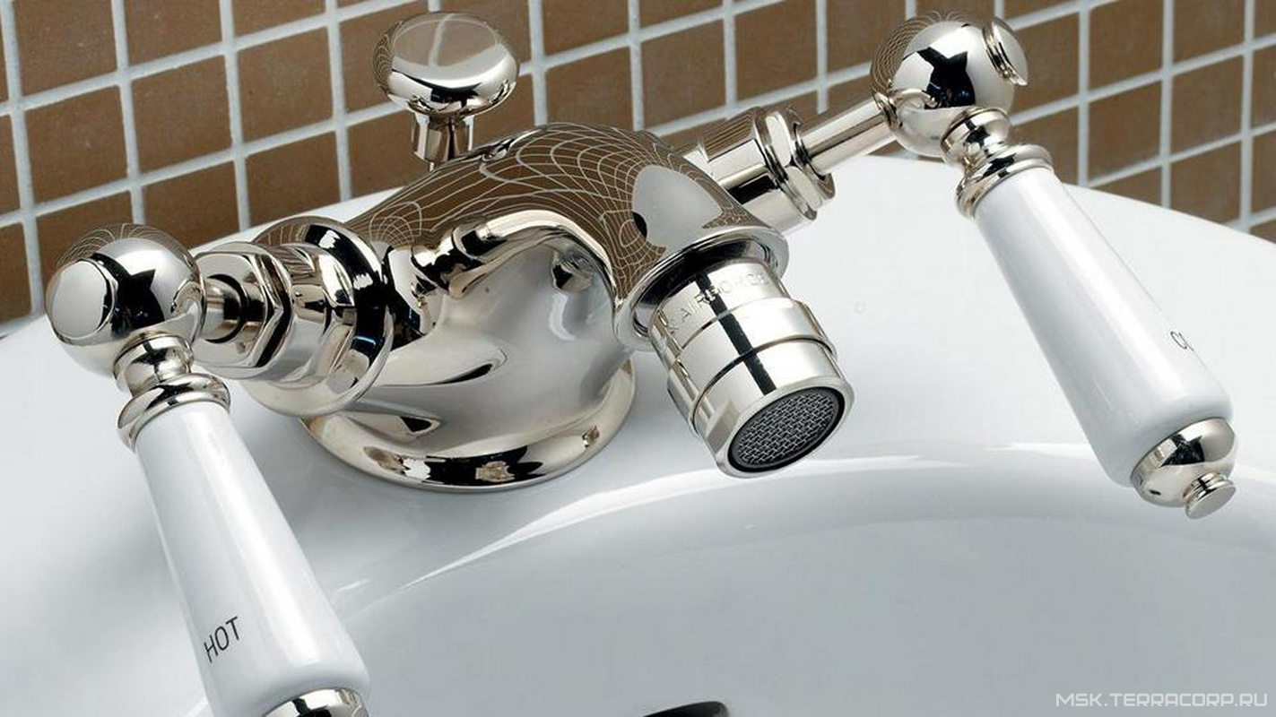 Смеситель для биде на 3 отв. c д/к, (цв.хром, ручки цв.белый), Dandy KL Смеситель для биде на 3 отв. c д/к, (цв.хром, ручки цв.белый), Dandy KL