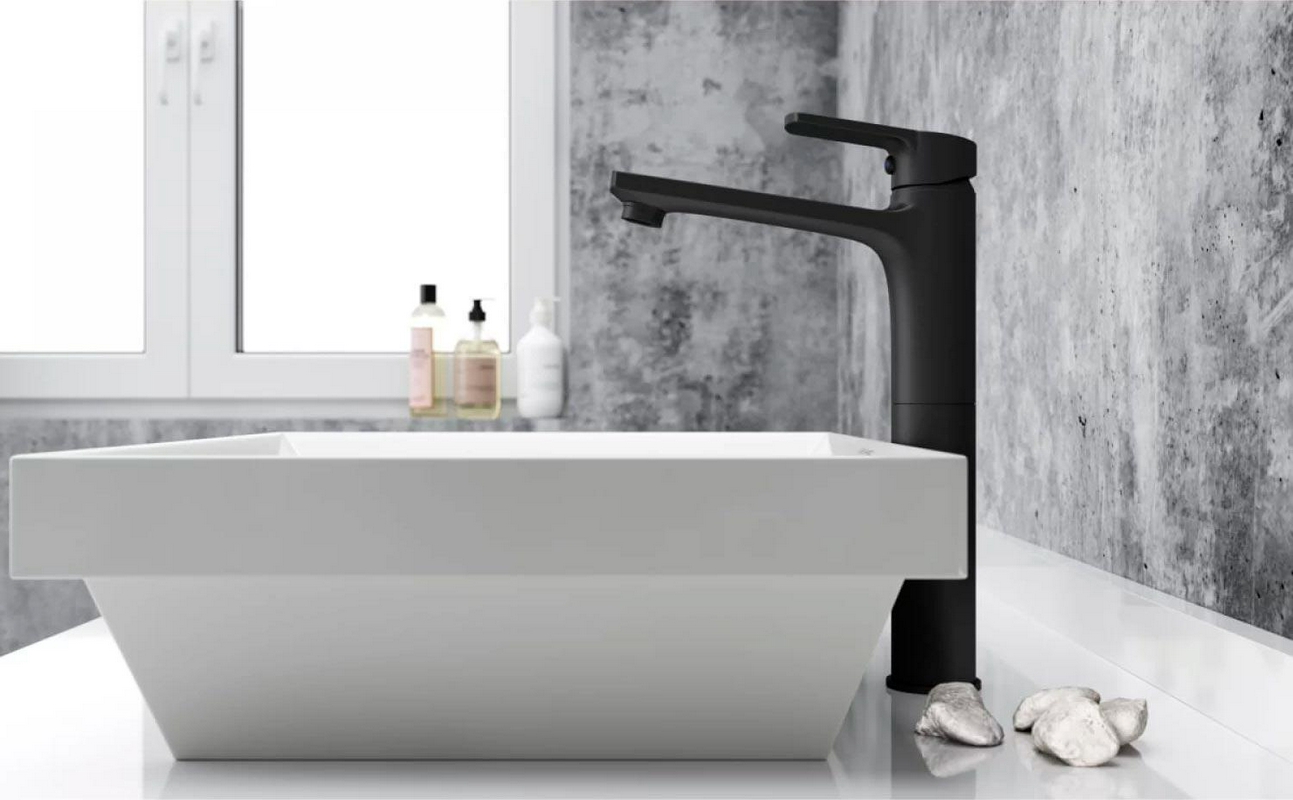 Смеситель для раковины, высокий, без донного клапана, цв.черый матовый Смеситель для раковины, высокий, без донного клапана, цв.черый матовый