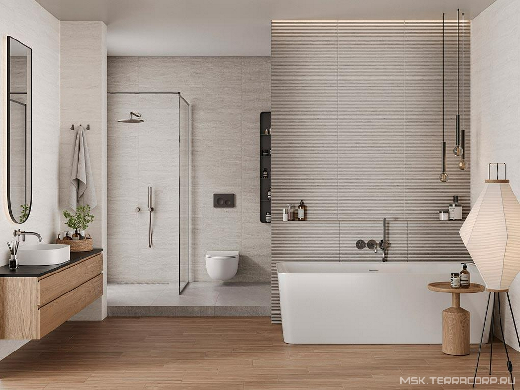 Керамическая плитка для стены Gracia ceramica Исаму Травертин сер верх 01 30x60 010100001779