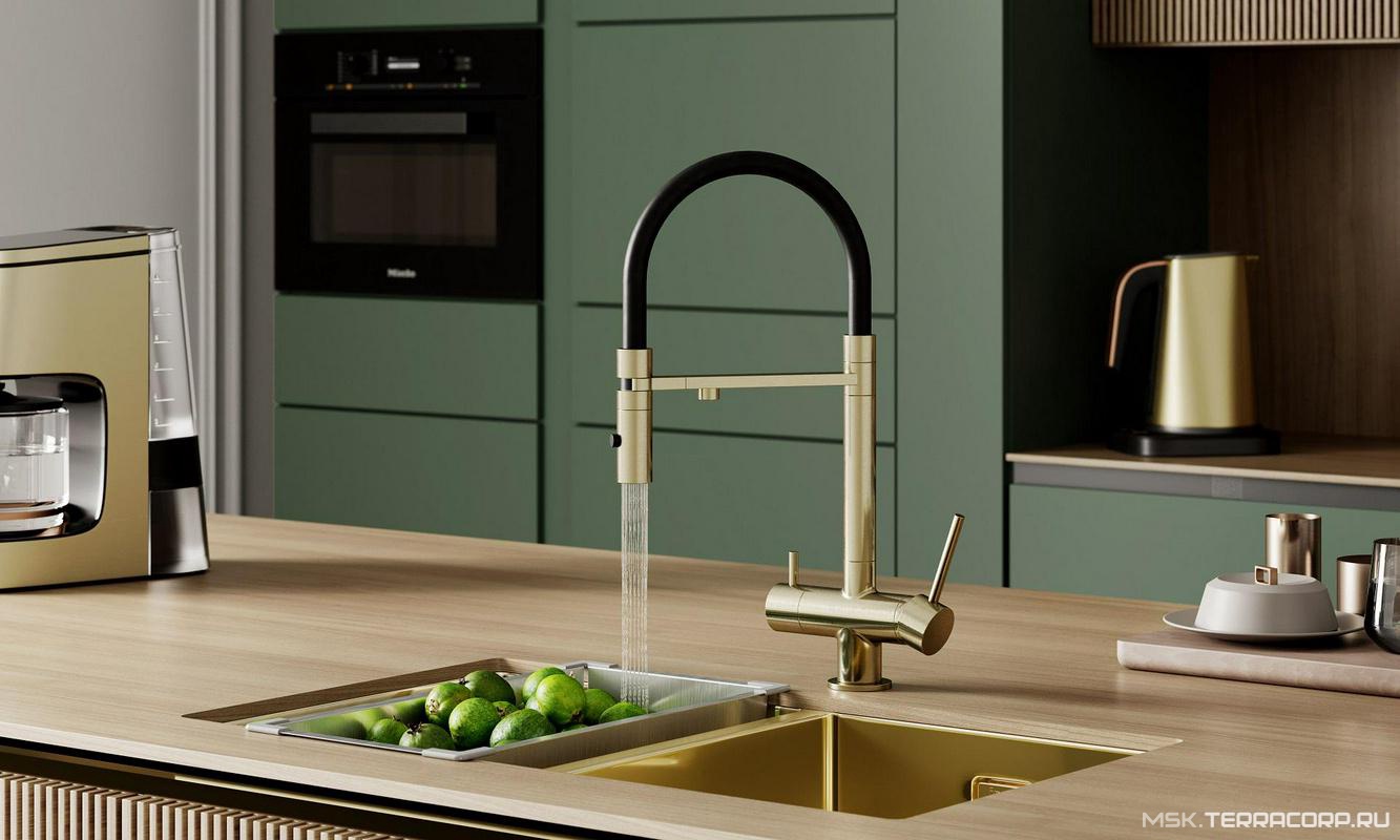 Смеситель для кухни ACEMGFFi05, гибкий излив, доп фильтр д/питьев.воды, магнитный замок, цв. черный / золото, ZZ Iddis Ace ACEMGFFI05