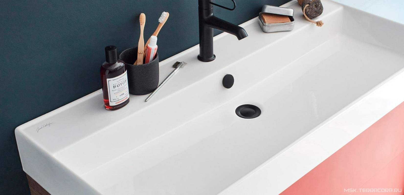 Раковина подвесная/накладная 120*46 см, 2 отверстия под смеситель, цв. белый ZZ