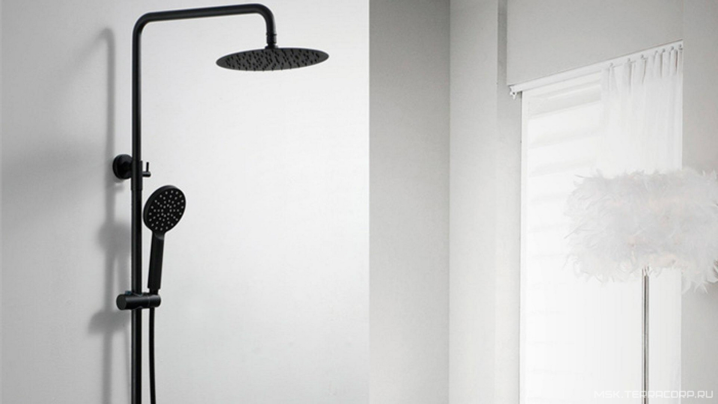 Душевая стойка для ванны, верхний душ, ручной душ, излив, цв. черный мрамор ZZ Душевая стойка для ванны, верхний душ, ручной душ, излив, цв. черный мрамор ZZ