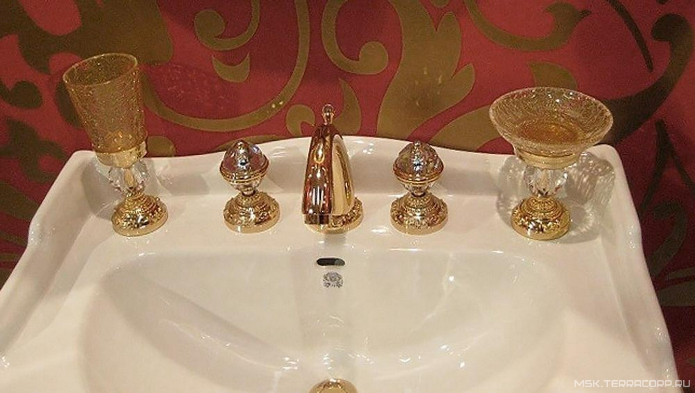 Смеситель для раковины на 3 отверстия, ручки Swarovski, цвет золото, CristaliaZZ Смеситель для раковины на 3 отверстия, ручки Swarovski, цвет золото, CristaliaZZ