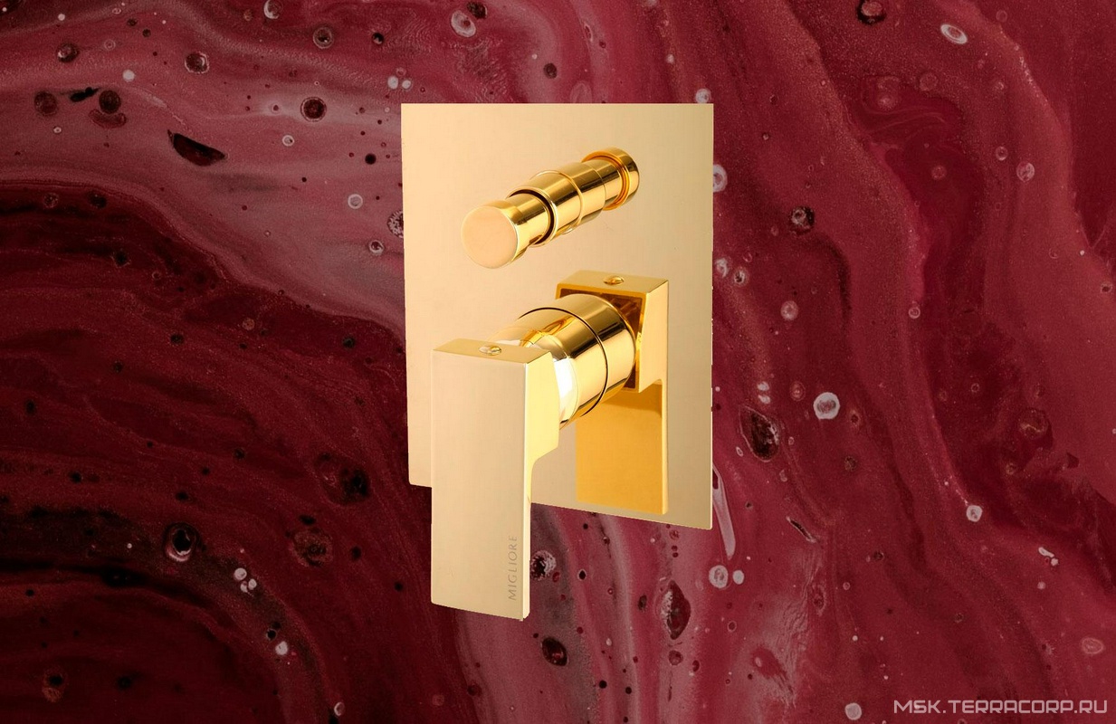 Смеситель для душа, встраиваемый в стену, на 2 потребителя, (цв.золото), Kvant ZZ