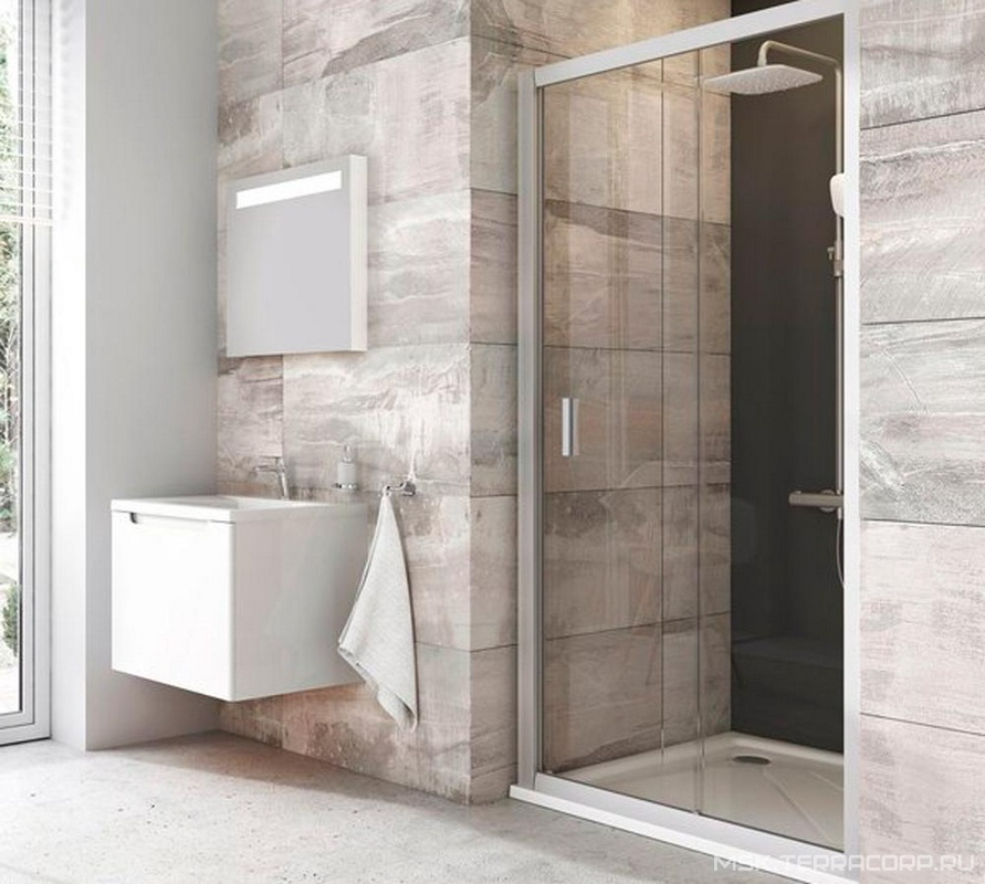 Душевые двери BLDP2-120, раздвижные двухэлементные, профиль блестящий хром, стекло прозрачное ZZ