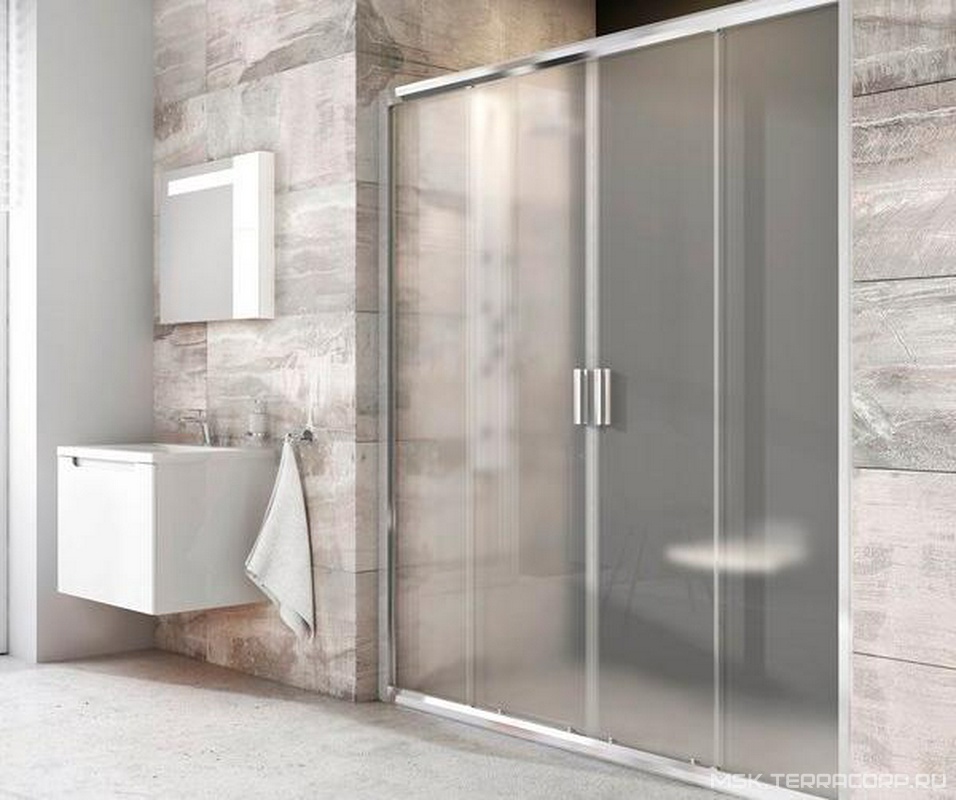 Душевые двери BLDP4-190, раздвижные четырехэлементные, профиль сатин, стекло прозрачное ZZ