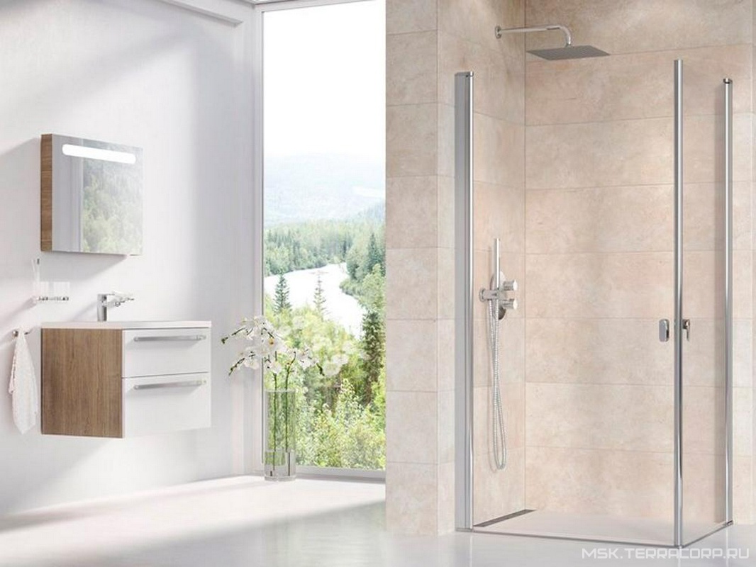 Дверь для душа распашная, CRV1-90, профиль сатин, стекло прозрачное ZZ
