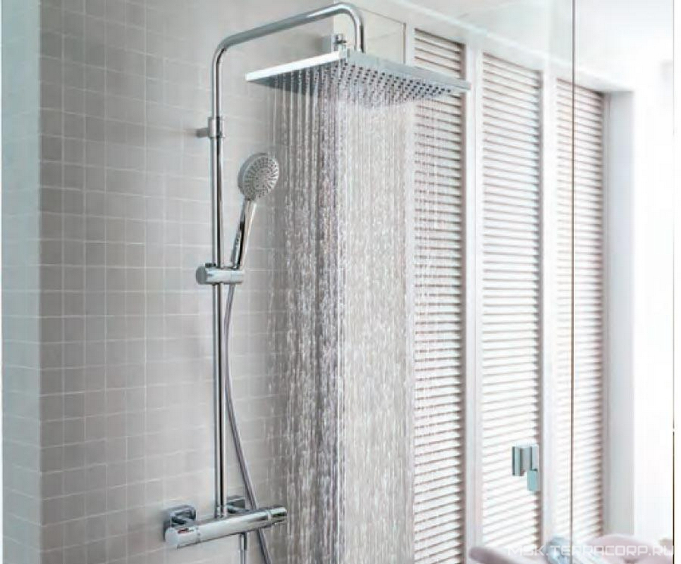 Душевая система Even-M Square (стойка, верхний душ, ручная лейка 3 реж., держатель, шланг), xром ZZ