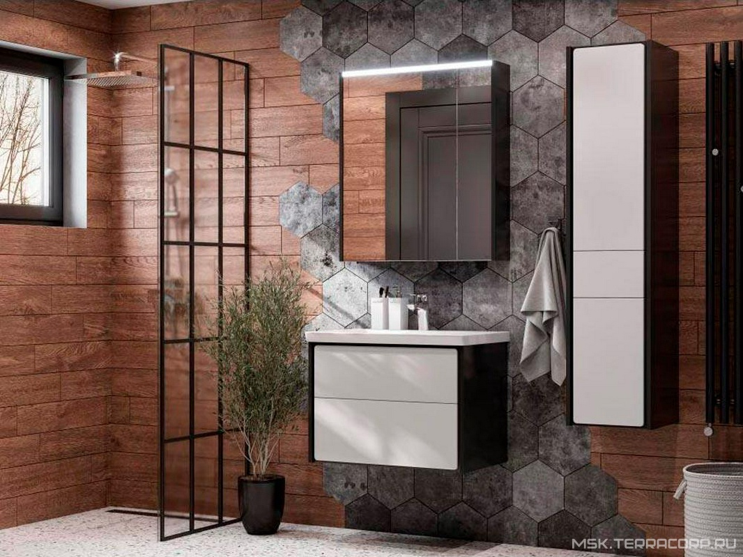 Тумба подвесная Ronda70 см, без раковины, цвет белый глянец/антрацит