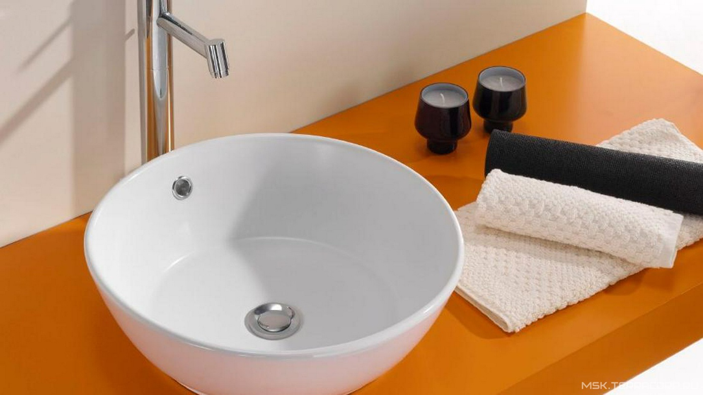 Раковина накладная на столешницу, круглая d45хh13,2см, без отв.д/смесителя, с переливом, Polop ZZ