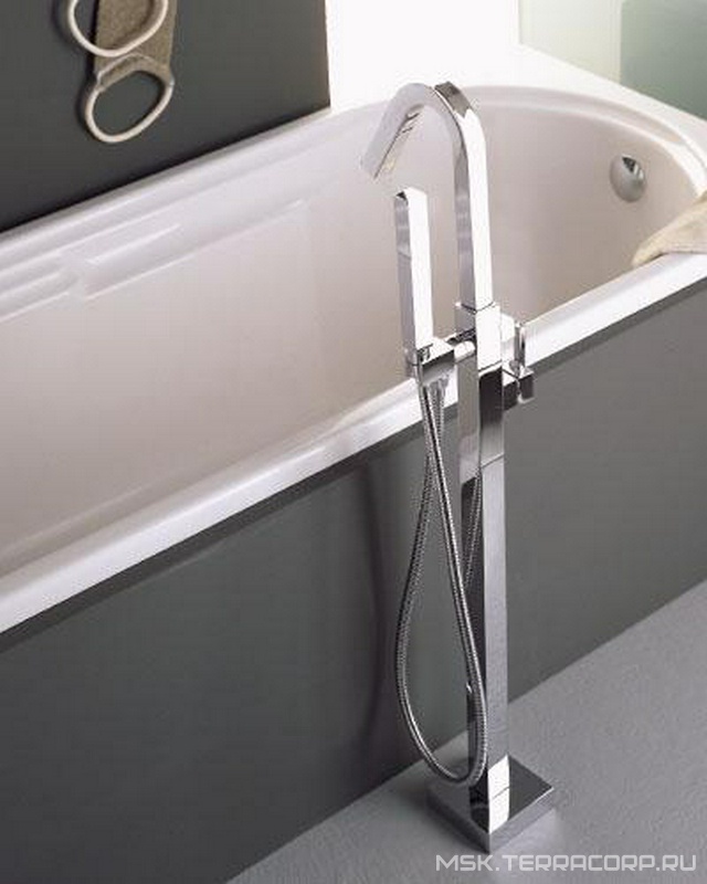 Смеситель для ванны, напольный на 1отв., излив, рычаг перекл., ручной душ, шланг, . (цв. хром) X-Change Mono ZZ