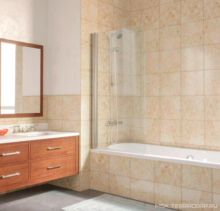 Душевое ограждение EV LUX 75 09 01, сторона левая 1505 мм, профиль золото, стекло прозрачное, покрытие BriteGuard , БЕЗ поддона ZZ