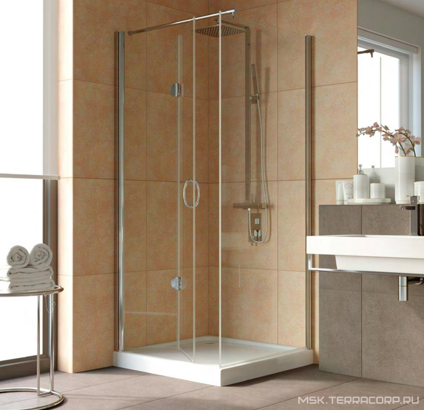 Душевое ограждение GPS-Fis, 90*90 см, дверь складная, духсекционная, правое, профиль хром глянец, стекло сатин с покрытием QuickNano ZZ