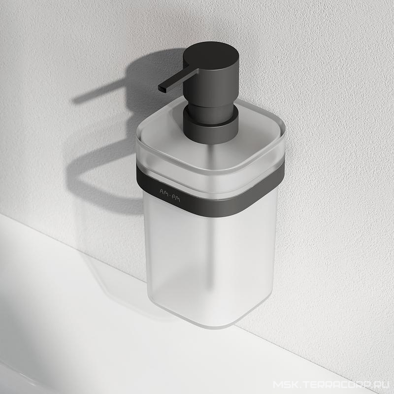 Дозатор AMPM FUNC Дозатор стеклянный для жидкого мыла, подвесной с держателем, цв. черный матовый, ZZ