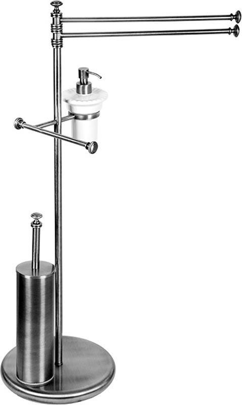 TW Collection Harmony Стойка напольная с двойным полотенцедержателем, керамическим дозатором, держат. т/б и ёршиком (цв.хром/керамика) Harmony ZZ