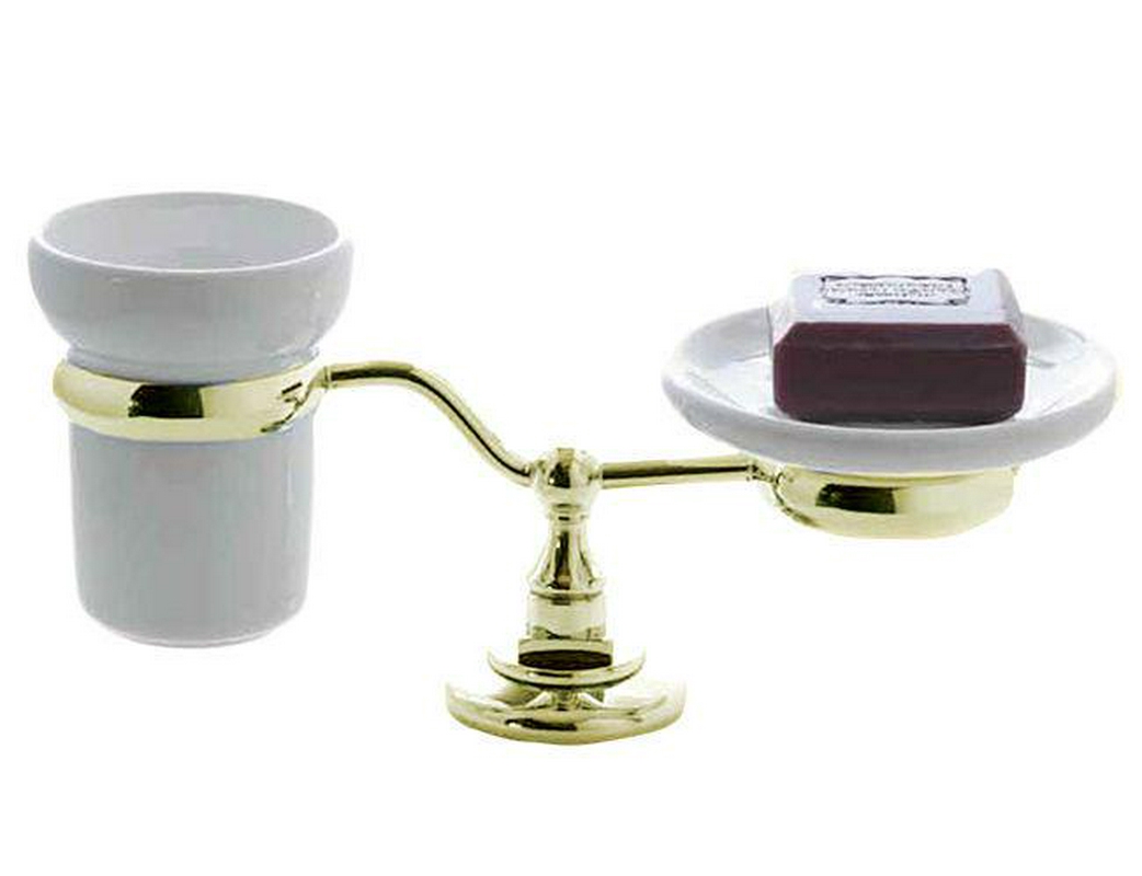 Simas Victoria Мыльница и стакан настольные (цв. золото / керамика) Victoria XX