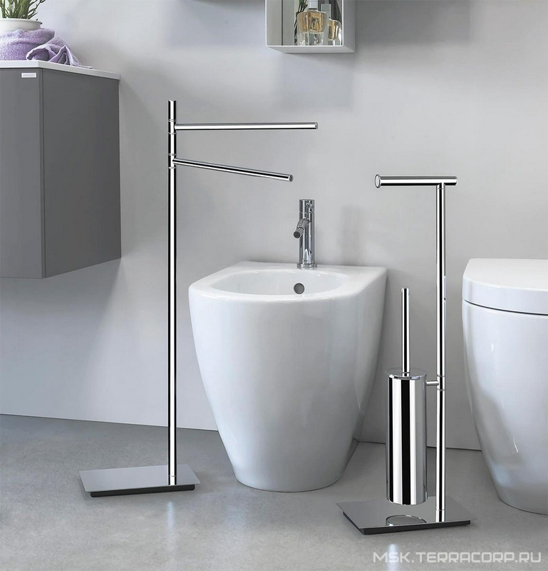Colombo Square Гарнитур напольный свободностоящий, (ёрш закрытый, держатель для туалетной бумаги), (цв.хром), Square ZZ