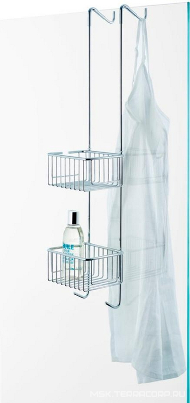 Полочка для душа прямоугольная 240х110мм, в комплекте со встроенный стеклоочестителем (контейнер белый пластик, держатель цв. хром), Moll
