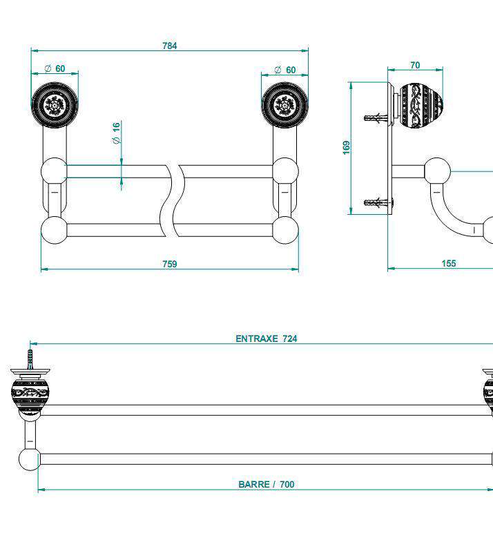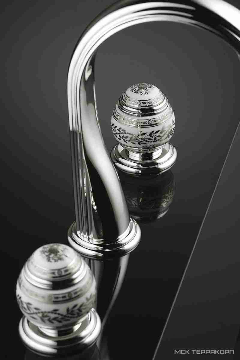 Полотенцедержатель THG Marquise Blanc Decor Полотенцедержатель двойной 70см. (цв. хром//декор белый/платина) Marquise blanc decor platine ZZ
