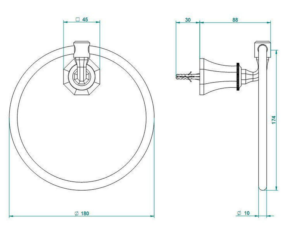 Полотенцедержатель THG Art Deco Кольцо 180мм для полотенец (цв.бронза (Bronze brillant)) Art Deco ZZ