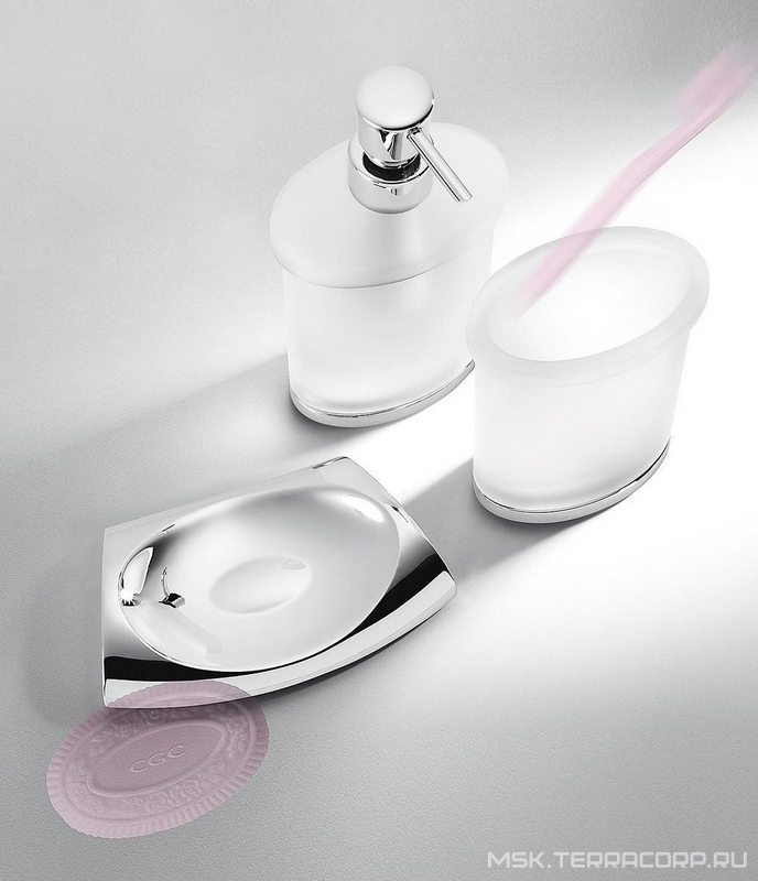 Стаканы для щеток Colombo Land Дозатор для жидкого мыла настольный, (стекло мат., металл. основа цв.хром), Land